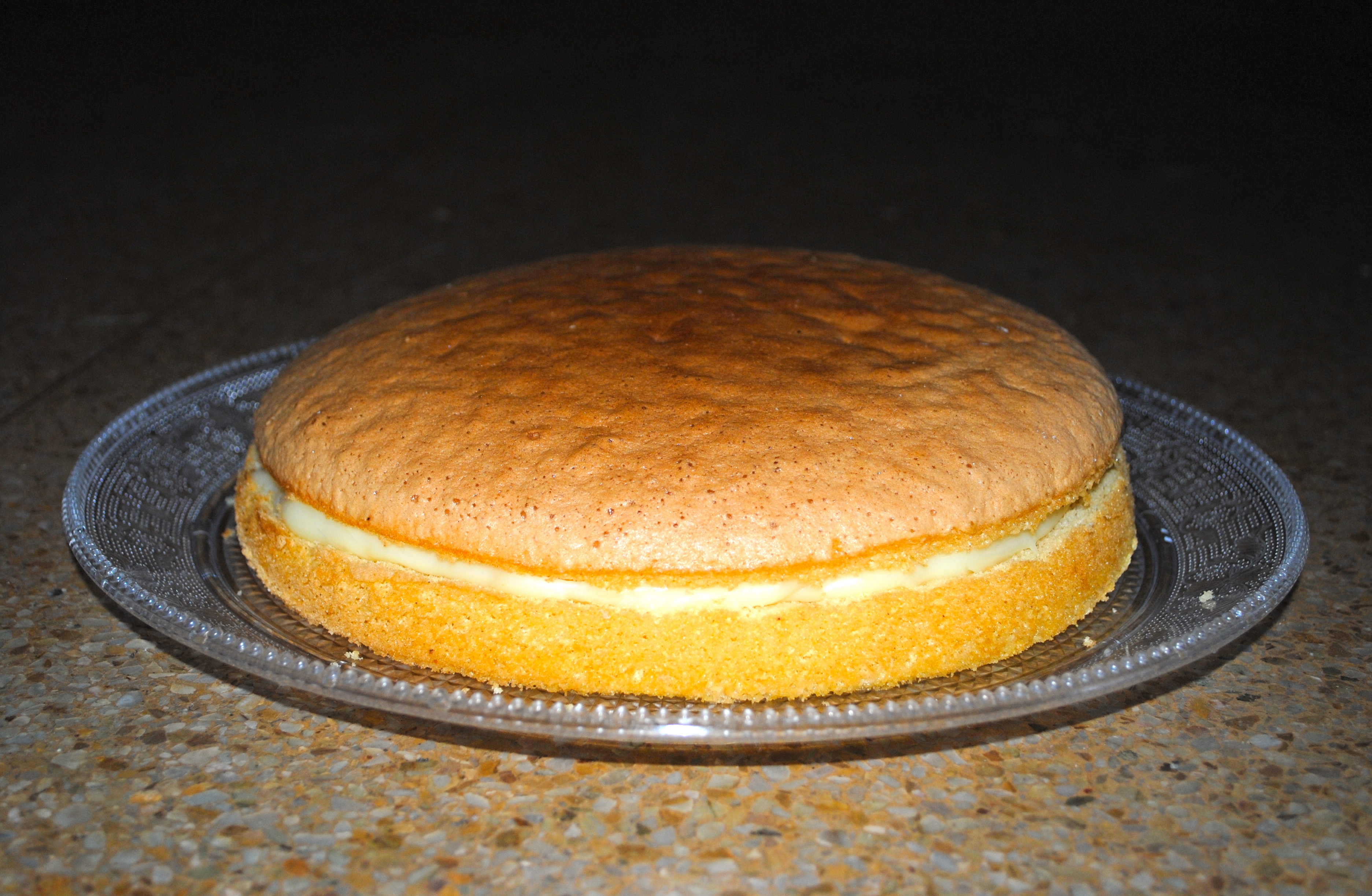 Separar las claras de las yemas y montar las claras hasta que tripliquen su volumen para luego ir añadiendo el resto de los ingredientes e incorporandolos si que queden grumos, lo horneamos a 180º hasta que al pincharlo salga seco, dejamos enfriar y rellenamos con lo que mas nos guste, crema de vainilla, chocolate , mermelada o simplemente solo.