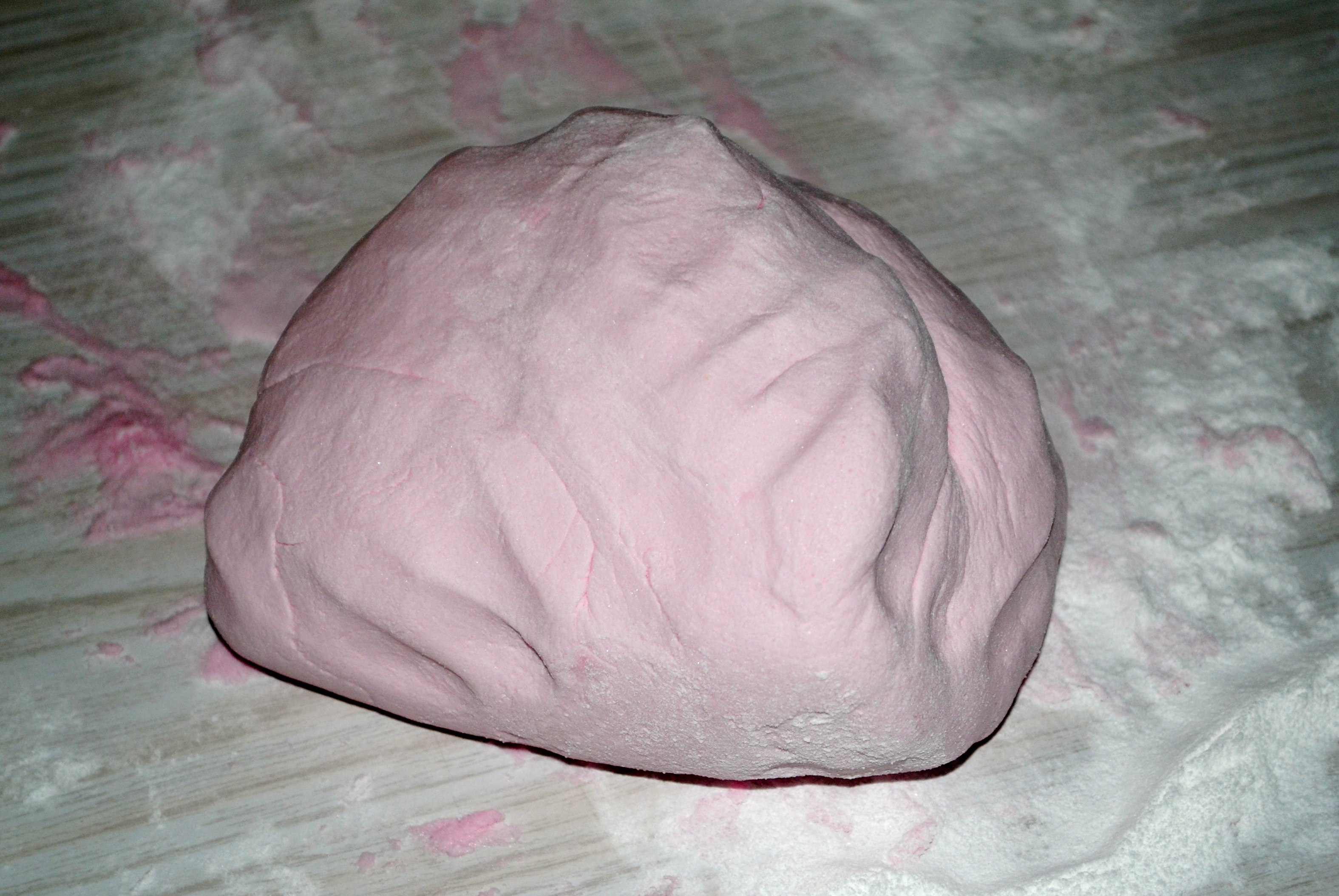 Separais un trocito, le añadís colorante rojo y volvéis a amasar para obtener este rosa fuerte, seguramente necesitareis un poco mas de azúcar glass para volver a obtener la textura de la masa original.
