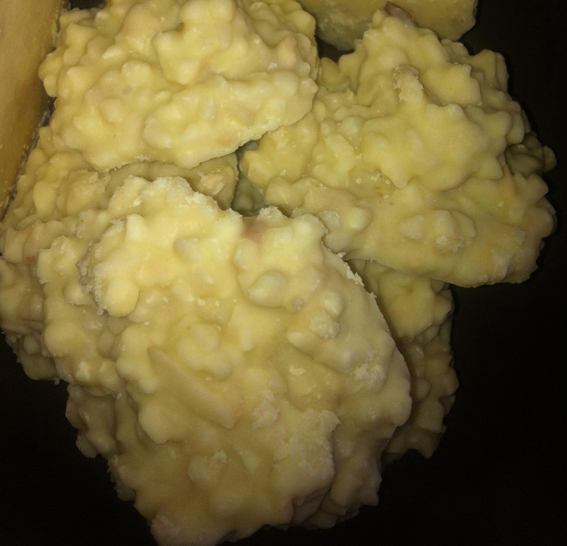 Ponemos al baño Maria el chocolate blanco, cuando este fundido le añadimos la manteca de cacao y dejáis que se funda y se integre con el chocolate, ahora añadimos la avellana y mezclamos con energía, lo apartamos del fuego y vamos poniendo montoncitos encima de papel de horno, las dejamos cuajar y ya tenéis una piedras blancas riquísimas!!!