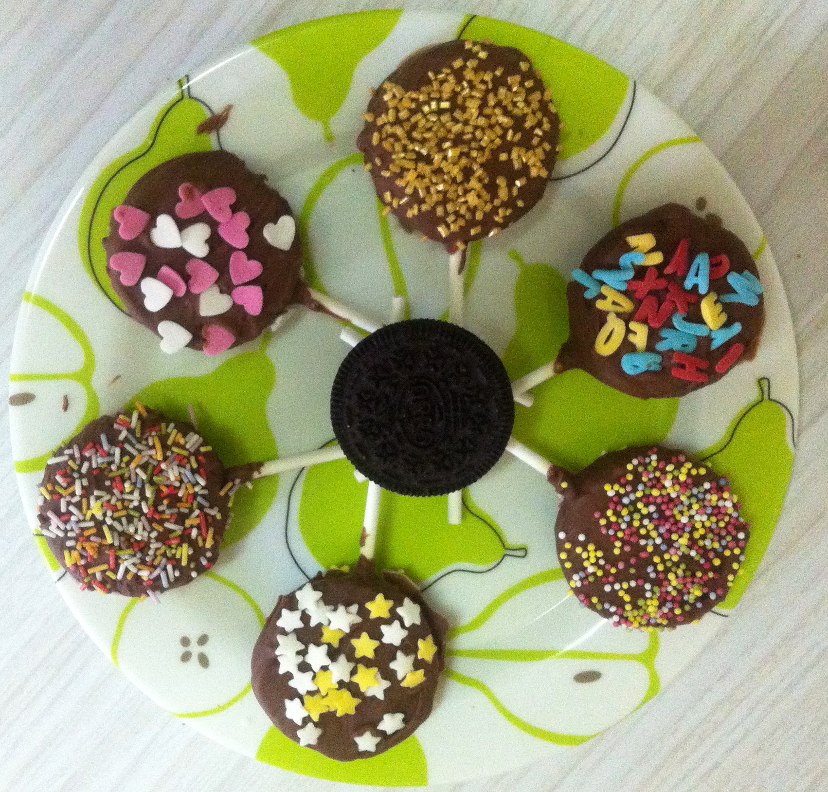 Esta receta es muy fácil y a los peques les encanta, os aseguro que lo comprobé y les gustan mucho. Vamos a por ellas, comenzamos despegando las galletas oreo con la ayuda de un cuchillo de punta redonda para que les cueste poco a los niños, con ellas despegadas cogemos nuestros palitos y los ponemos en el medio de una de las galletas, la cubrimos con un poco de la crema del relleno y colocamos la otra galleta encima presionando un poco (si es os rompen un poco no os preocupéis siempre que la galleta quede entera, aunque este rajada el chocolate lo cubre), con todos los palitos puestos las dejamos en un plato y vamos a por el chocolate, para ello ponemos al baño maria el chocolate dejamos que se nos derrita y quede total mente liquido para poder cubrir nuestras piruletas, vamos cogiendo las galletas y con la ayuda de una cucharita vamos echándoles el chocolate por encima cubriéndolas totalmente incluido un poco del palo para que no se nos despeguen, las vamos colocando en una bandeja cubierta de papel vegetal y adornándolas con lo que mas nos guste, las dejáis en el sitio mas frío de la casa o en su defecto la parte menos fría de la nevera y nada mas que veáis que el chocolate no brilla y esta duro ya tenéis vuestras piruletas. Son muy sencillas de hacer y lo pasareis muy bien con los peques, el único paso que debéis tener cuidado es con el chocolate para que los reyes y reinas de la casa no se os quemen. Espero que os gusten!!!!.