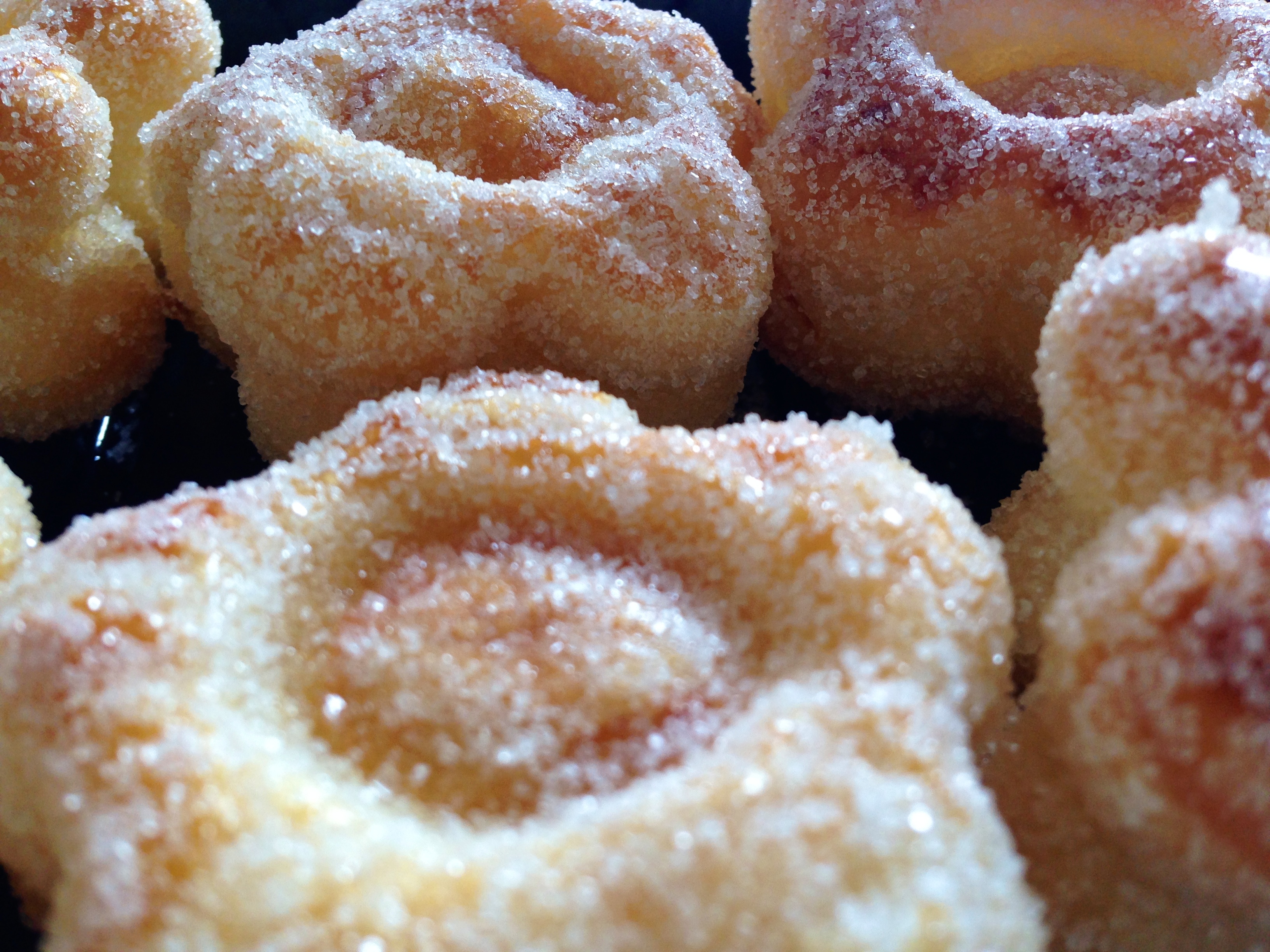 Las flores se hacen igual que los hojaldres las dos únicas diferencias son que para ellas necesitáis un cortador de pasta en forma de flor ( el mas pequeño que encontréis) y que una vez estén remojadas en el almibar y estén frías las rebozáis en mas azucar, no tiene mas diferencia. En mi familia no se cual deciros que gustan mas porque tengo las opiniones divididas entre mi padre y mi hermana, así que probar las dos y luego me decís cual os gustan mas.