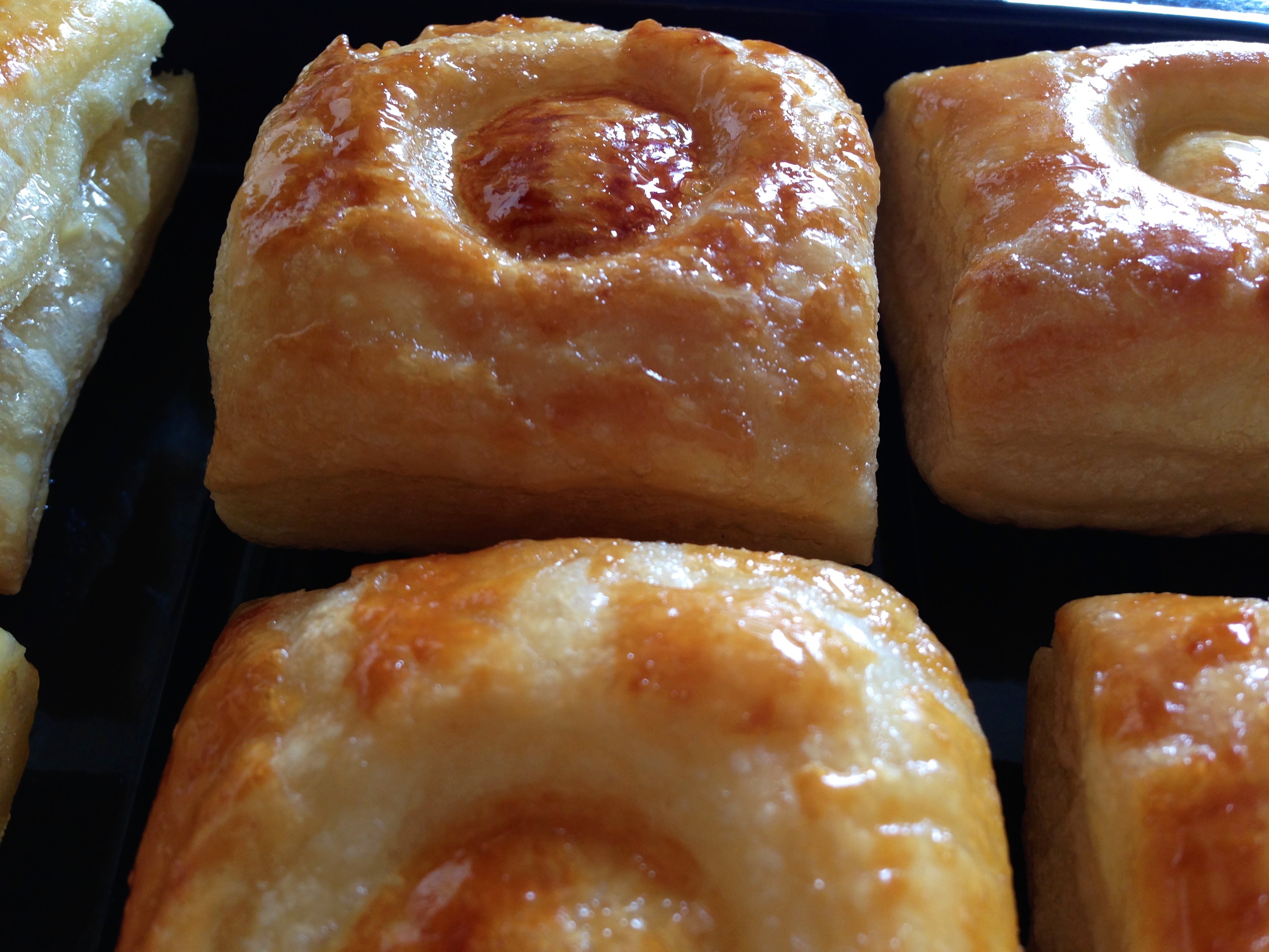 Los hojaldres son muy fáciles de hacer, empezamos cortando tiras con un ancho de tres dedos, una vez las tenemos vamos cortando cuadrados, el resultado tiene que ser un numero par (esto parece una clase de mates jejejeje), ahora que tenemos los cuadraditos lo separamos en dos grupos uno de ellos lo dejamos como esta y el otro grupo les vamos haciendo un aujero en el centro, yo lo hice con un descorazonado de manzanas pero con un tapón de botella también lo podéis hacer, una vez hecho con un poco de agua vamos pegando un trozo con aujero encima de uno que no lo tenga procurando que quede como si fuera uno. Ponemos nuestros cuadrados en la placa del horno cubierta con papel vegetal y horneamos a 200º en el horno previamente precalentado, los horneamos (dejar separación entre ellos porque crecen bastante) hasta que los veamos doraditos durante unos 15 minutos mas o menos, los vamos sacando y dejando enfriar, mientras ellos van enfriando hacemos el almibar mezclando los tres ingredientes, dejando que se fundan y quede liquido, lo apartamos del fuego y cuando este templado vamos remojando bien los hojaldrados y dejándolos secar en una rejilla. Una vez los tengamos todos los guardamos poniendo en el recipiente (a ser posible que cierre hermético) un papel vegetal entre cada capa y en la base para que no se peguen entre ellos. Listos los hojaldres 🙂
