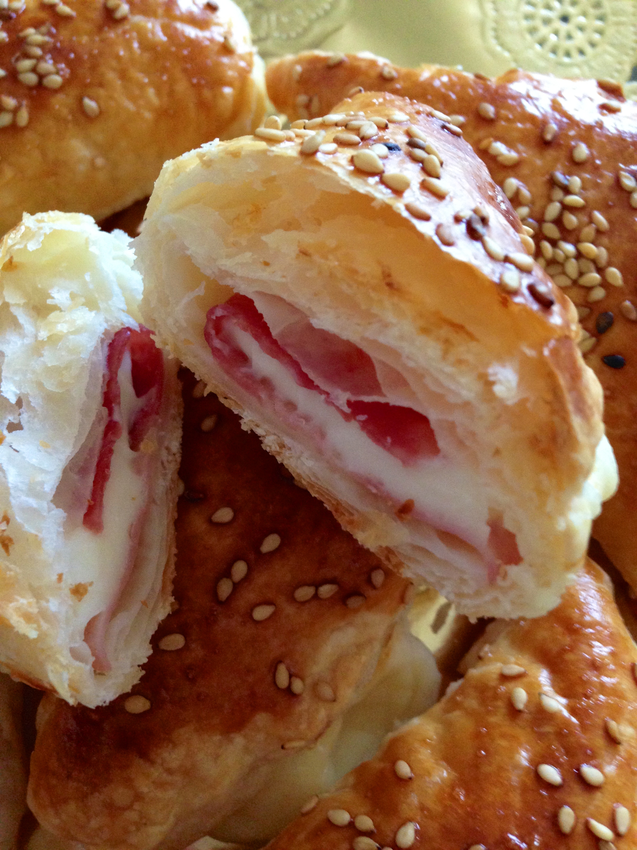 Este es otro entrante con el que os aseguro que triunfareis y también es muy fácil de hacer. Lo primero que hacemos es cortar el hojaldre en cuadrados, ahora ponemos un cuadrado mas pequeño dentro (tenemos que dejar los bordes libres para cerrar el pañuelo) de jamón de York y dentro el queso, preparamos la placa del horno cubierta con papel vegetal para ir colocando los pañuelos para lo que cogemos los cuadrados cerramos en forma de triángulo doblando el hojaldre hacia abajo cerrando todo el borde, los colocamos en la placa del horno déjanos espacio entre ellos, los pintamos con el huevo y rociamos con el ajonjolí. Con el horno ya caliente a 200º los introducimos 15 minutos o hasta que estén dorados y como las Espirales de Jamón dejamos enfriar para comer unos bocaditos muy ricos.