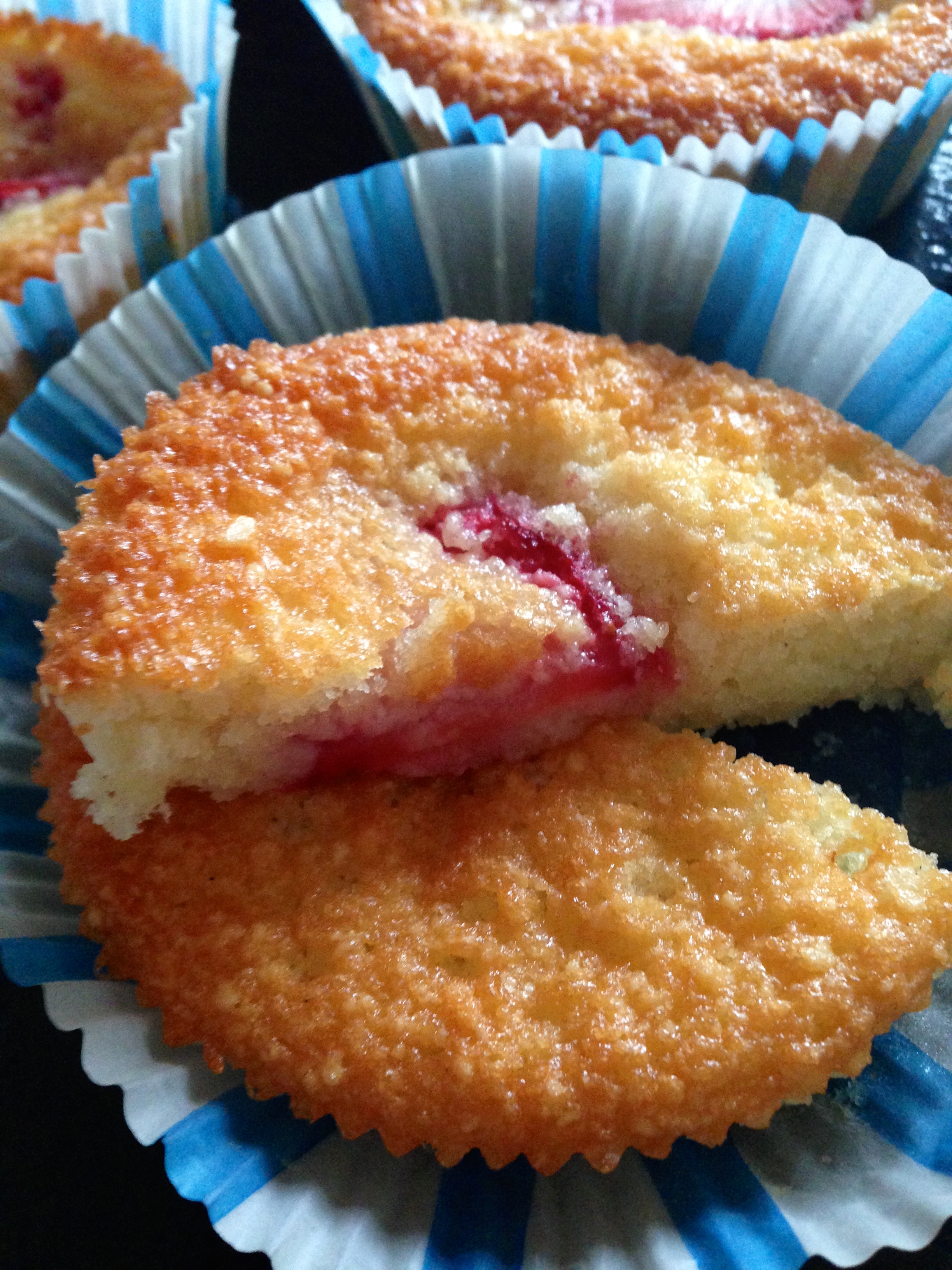 Empezamos poniendo en un bol las claras, batimos con un tenedor hasta que empiece a salir espuma en ese momento añadimos la mantequilla, el azucar, la almendra y la harina, mezclamos todo muy bien hasta crear una crema, con ella creada vamos cogiendo moldes de papel individuales y poniendo crema en ellas hasta la mitad de cada molde, le ponemos dos rodajitas de fresa encima y ya con el horno caliente a 180º las horneamos unos 20/25 minutos (dependiendo del horno), pasado ese tiempo los pinchamos y si sale seco retiramos, dejamos enfriar y listos para comer.