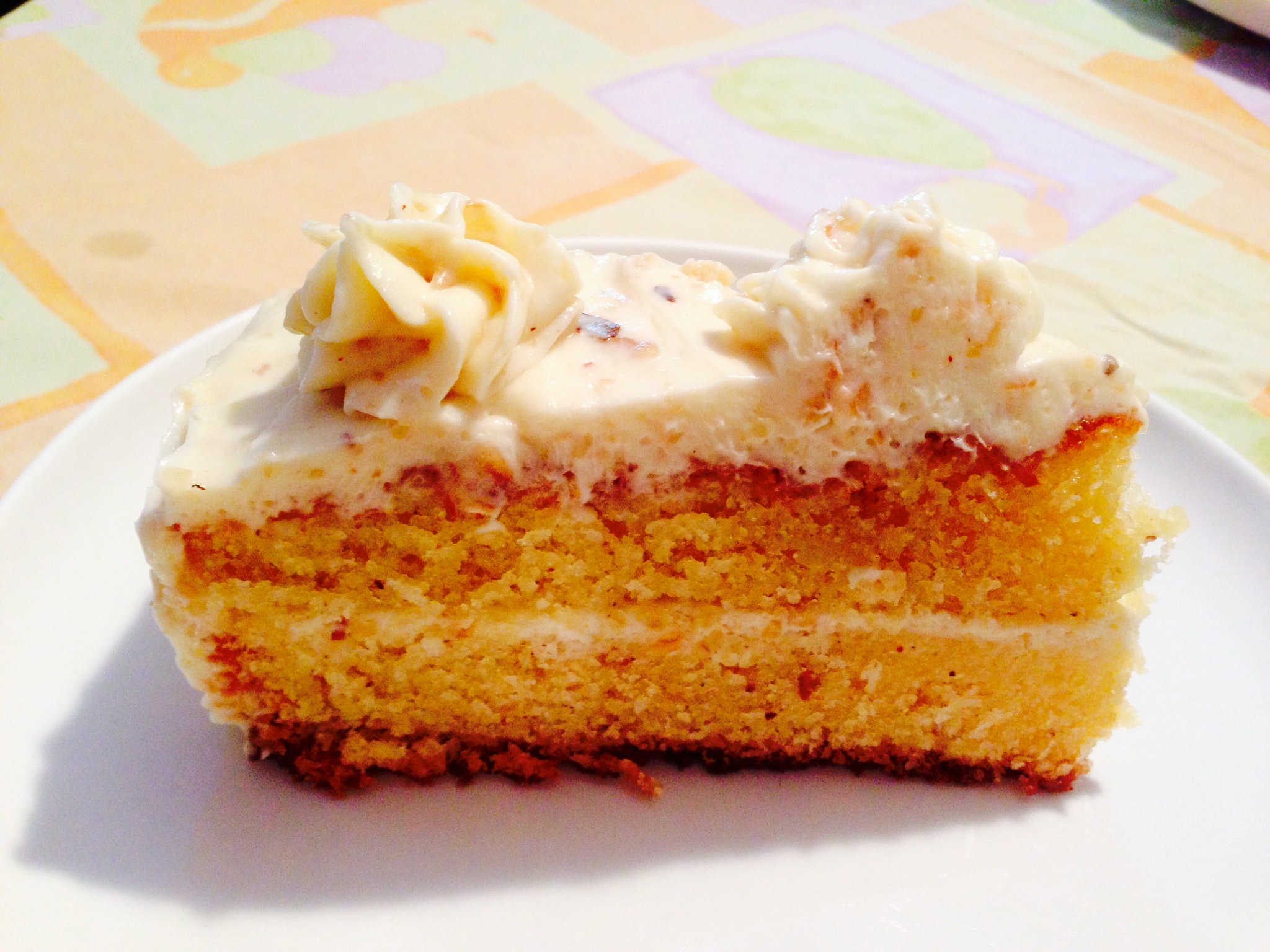 Bueno vamos a montar el pastel, abrimos por la mitad el bizcocho y ponemos un poco de la crema extendiéndola para crear una capa por toda la superficie, lo tapamos y con el resto de la crema glaseamos todo el pastel, listo ahora lo podéis decorar como mas os guste y a disfrutar 😉