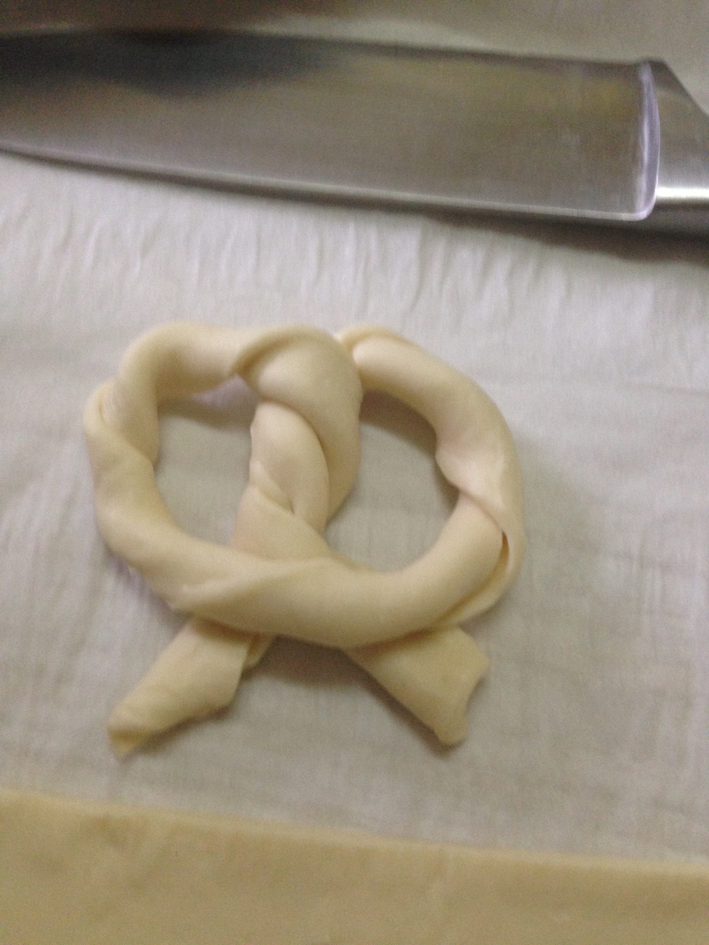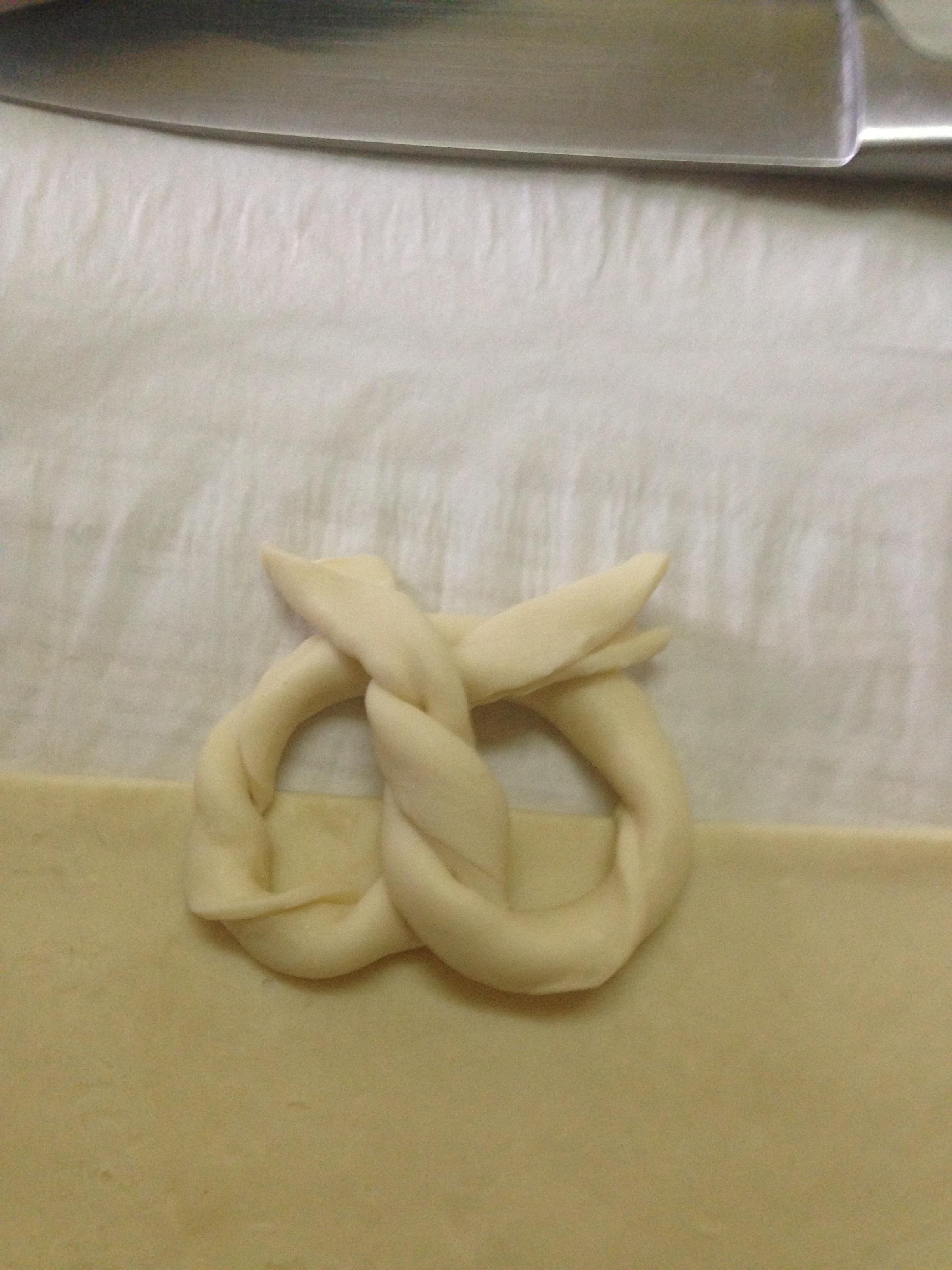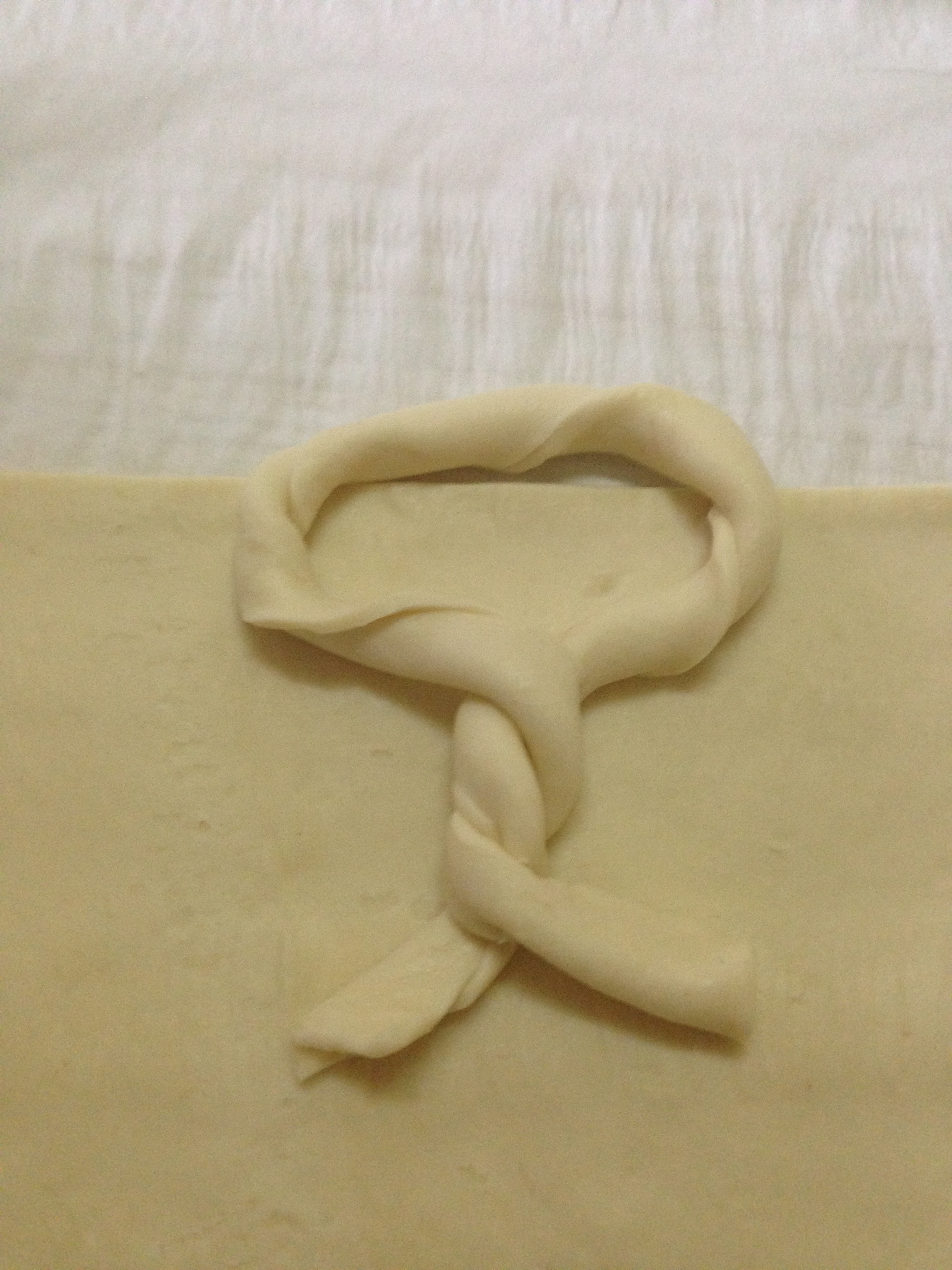 Cortamos tiras de un dedo y medio de grosor, lo giramos sobre si mismo (como en la foto) hasta tener todo el hojaldre preparado.