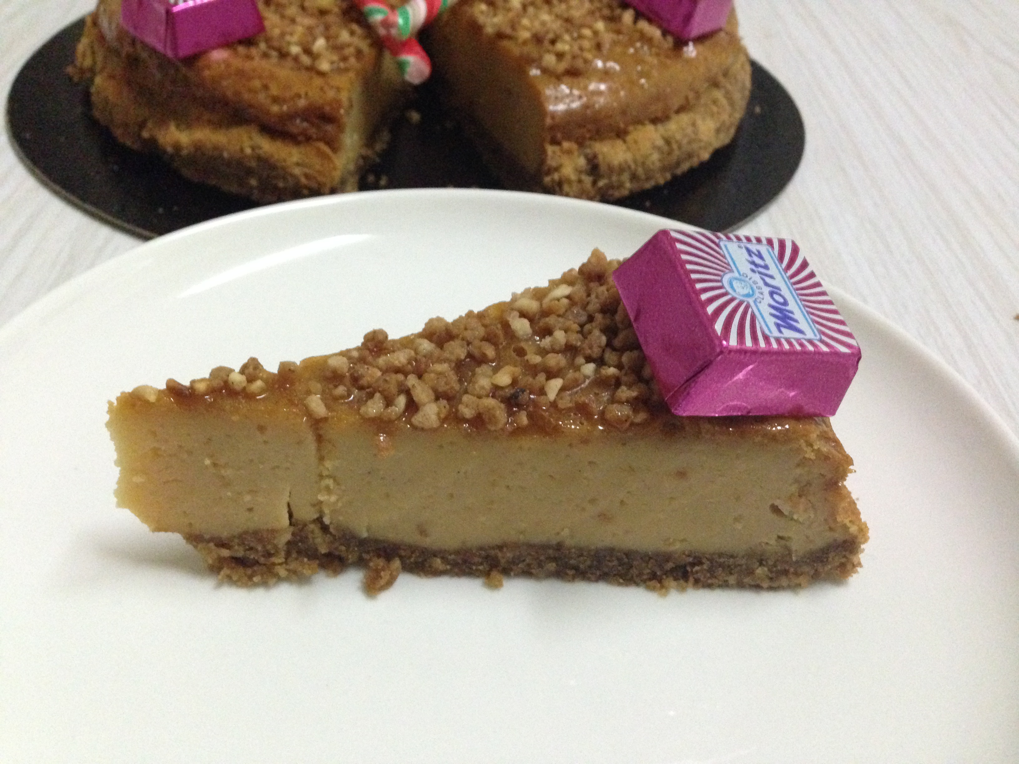 Vamos con la crema, Ponemos todos los ingredientes en una cacerola a fuego medio/bajo y removemos hasta que veamos que esta caliente y empieza a hacer burbujas, en ese momento retiramos del fuego y con una batidora de mano y mucho cuidado que no nos salpique (quema bastante) lo trituramos todo (mientras ya vamos calentando el horno a 175º), cuando lo tengamos bien trituradito sacamos el molde de la nevera y vertemos la crema encima de la galleta con cuidado, lo llevamos al horno y lo dejamos ahí unos 30 minutos aproximadamente comprobamos si ya esta cocida y si esta retiramos. Mientras nos enfriar vamos haciendo el almibar (ya sabéis hasta que haga un hilo entre dos dedos), cuando lo tengamos desmoldamos con cuidado de no romperla y rociamos el almibar por encima o con ayuda de un pincel, colocamos en crocanti y ya solo nos queda dejarla enfriar para tendremos una tarta de turrón para las Navidades 😉