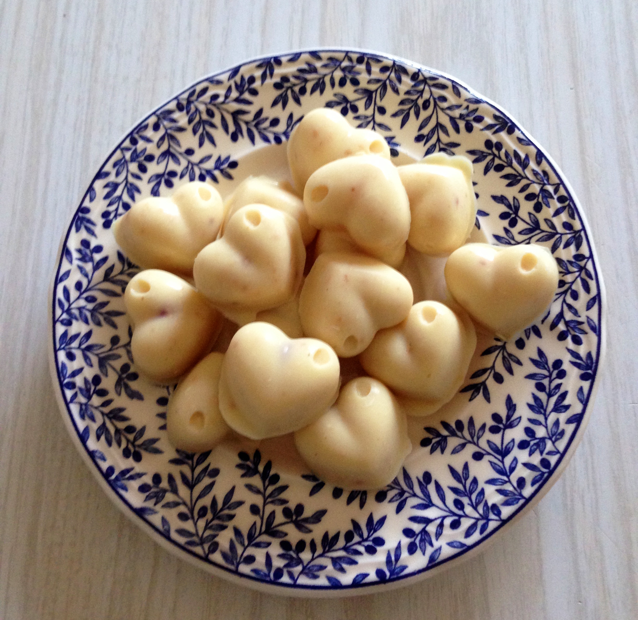 Bueno para esta receta necesitamos moldes de bombon en forma de corazón.