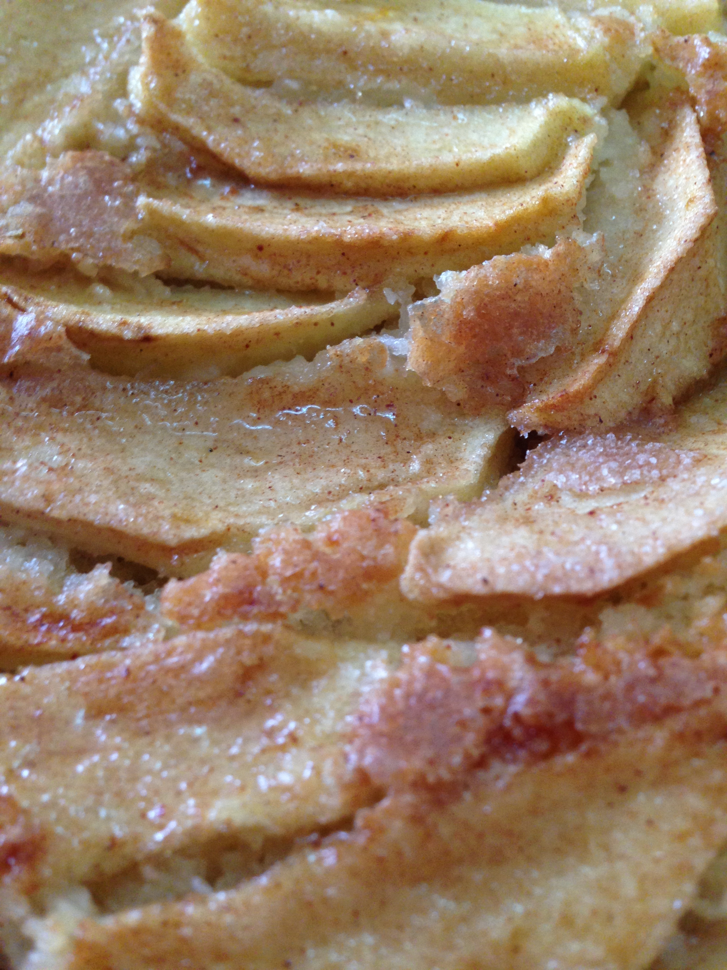 Ponemos en un bol los huevos, los batimos con el azucar hasta que sea una crema a la que le añadimos la harina tamizada con la levadura, cuando este bien incorporada añadimos la nata y el coco para terminar por incorporar la mantequilla, lo pasamos todo a un molde redondo y engrasado, colocamos por encima las manzanas laminadas y cubrimos con dos buenas cucharadas de azucar mezclado con una pizca de canela. Cuando el horno este caliente a 175º introducimos el pastel y lo horneamos unos 40 minutos aproximadamente o hasta que veamos que esta bien doradito y al pincharlo sale el pincho seco. Ya solo queda sacar, dejar enfriar para desmoldar y servir 🙂