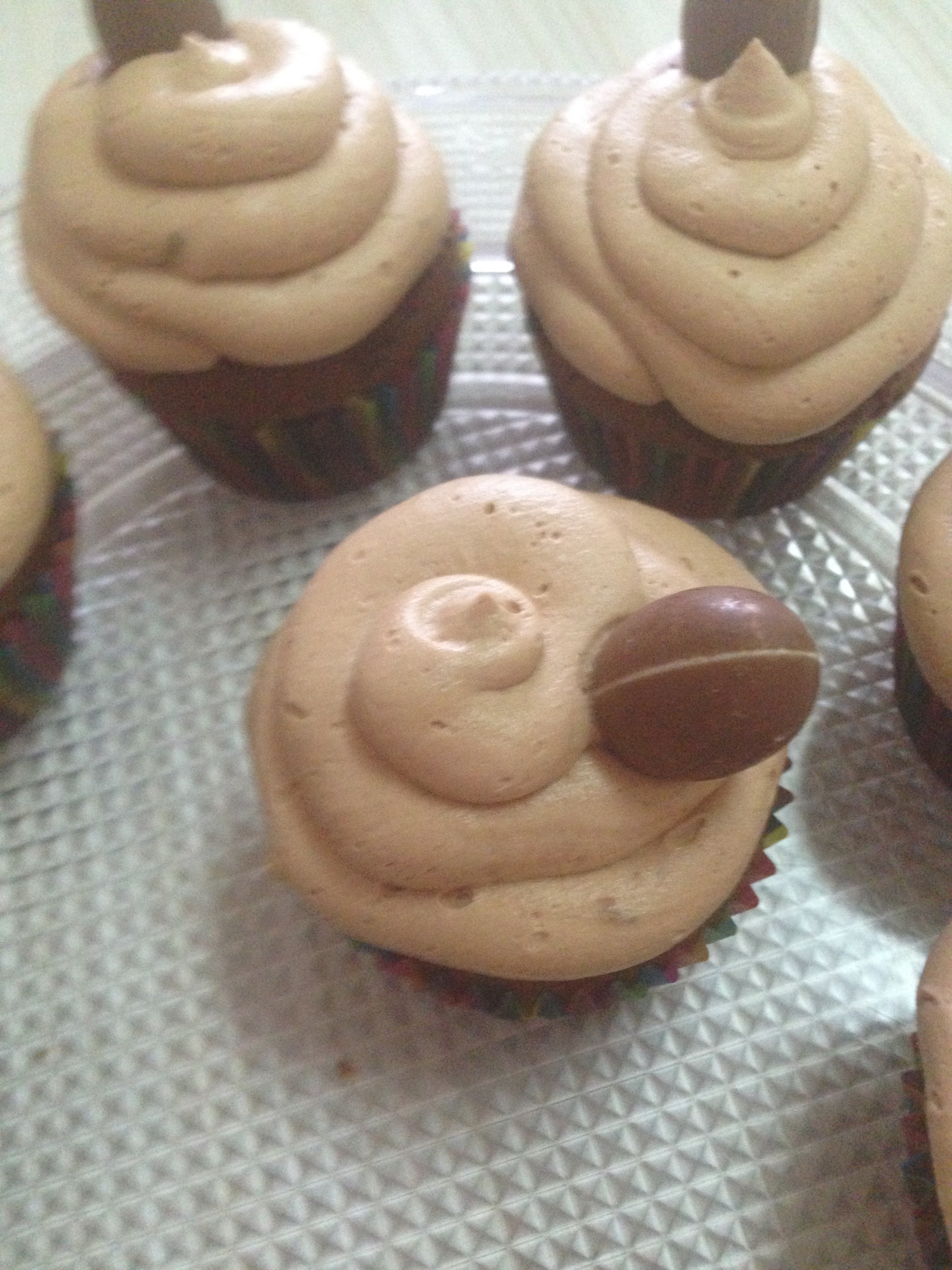 Vamos a comenzar con los bizcochitos para lo que ponemos en un bol el azucar con la mantequilla, batimos hasta crear una crema para luego por este orden y de uno en uno para integrar bien vamos añadiendo los huevos,la vainilla, la leche y por ultimo tamizado todo junto la harina con la levadura y el cacao. Ponemos el horno a calentar a 180º y mientras vamos rellenando hasta la mitad las cápsulas de papel para los cupcakes, cuando los tengamos los vamos cociendo durante unos 20 minutos aprox. o hasta que veas que ya están hechos, cuando ya los tengamos todos y este fríos con la ayuda de un descorazonador de manzana vamos haciendo un hueco en el centro (sin llegar abajo) que cada uno, ponemos unos cuantos minilacasitos y tapamos con un poco del sobrante, ya los tenemos todos preparados así que nos ponemos con el frosting ponemos en un bol todos los ingredientes para ello y con unas varillas eléctricas lo batimos hasta crear una crema que pasamos a una manga pastelera de boquilla lisa (si la tenéis sino vale rizada) y vamos desde fuera hacia dentro adornando ponemos un huevo de chocolate encima y listos!!!