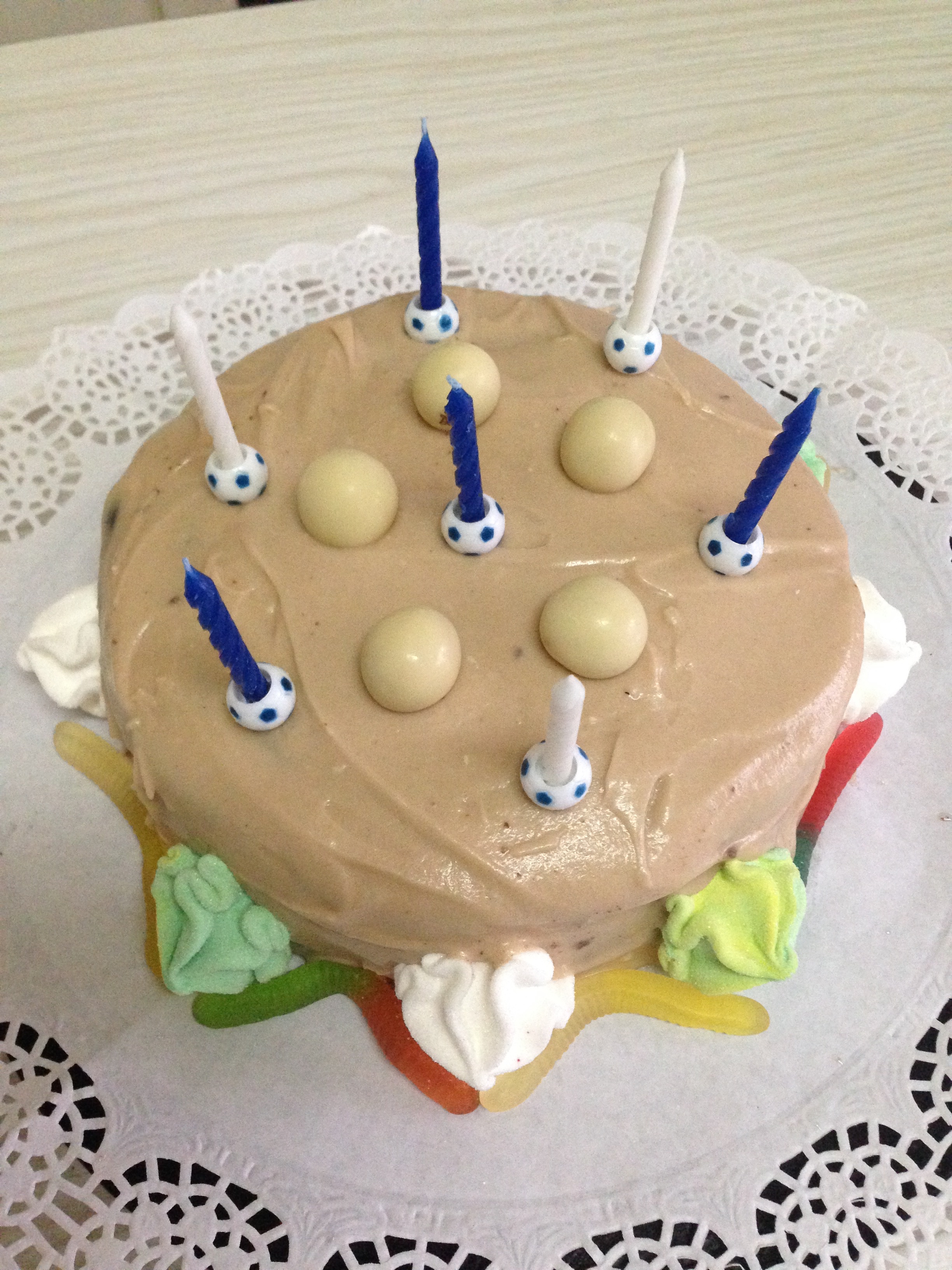 Ya tenemos las dos partes solo queda unirlas. Ponemos un un tercio del gaseado entre las dos partes cubriendo toda la superficie de una y tapando con la otra, ahora cogemos el resto de la glasa y cubrimos todo el pastel con ella y solo queda adornarla como mas os guste 😉
