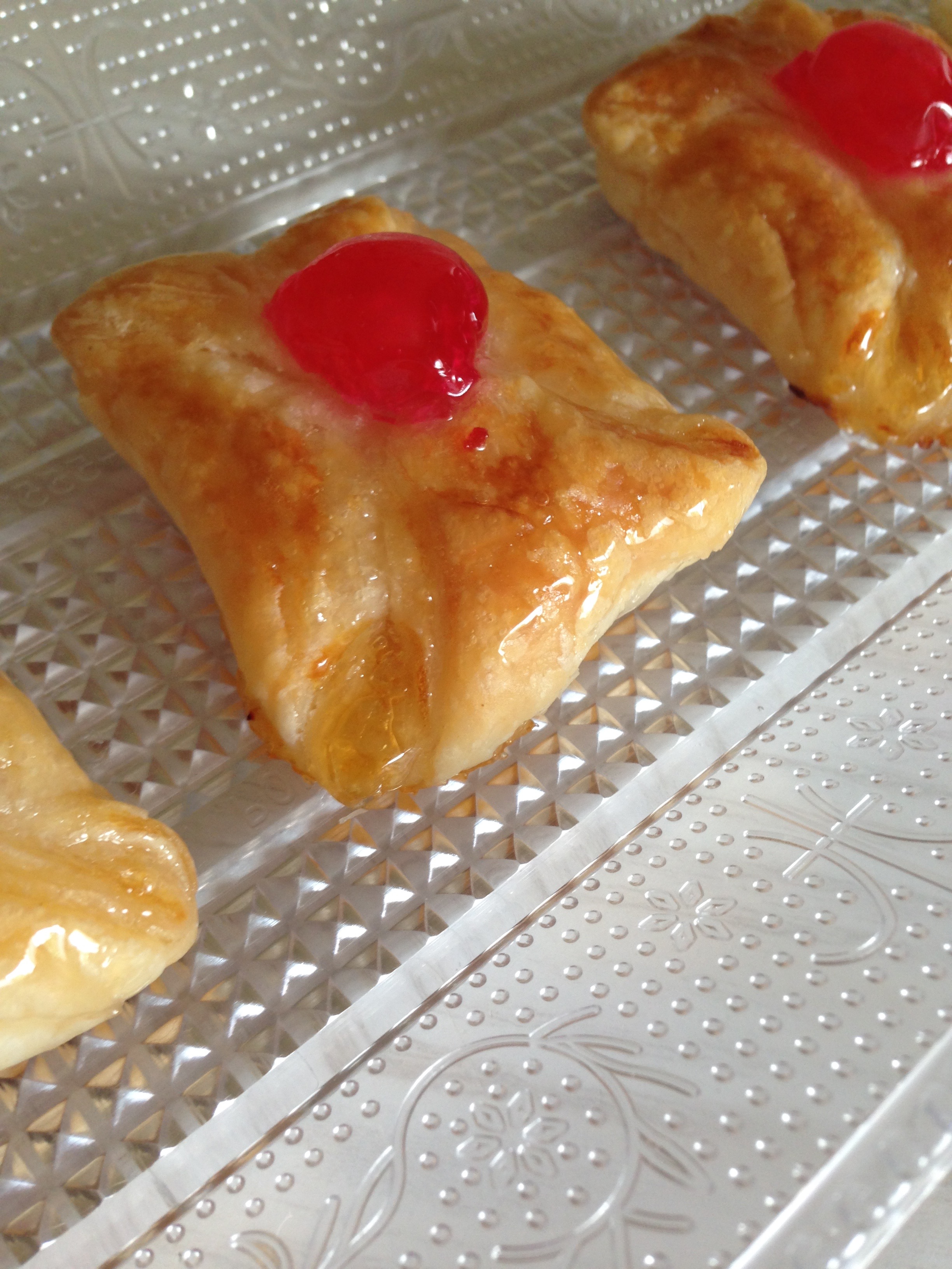Estiramos el hojaldre, con un cortapasta cuadrado (así os saldrán perfectos) vamos cortando el hojaldre, mientras tendremos el horno calentando a 200ºC. Una vez tengamos todo el hojaldre cortado ponemos en el centro un poco de la confitura o mermelada y vamos cerrando los saquitos cogiendo las esquinas y plegando hacia el centro sellando bien para que en el horno no se abran, una vez este todos cerrados en el punto de union colocamos apretando un poco media cereza, los colocamos en una placa de horno cubierta con papel vegetal y al horno unos 10 minutos o hasta que este dorados, en ese m neto retiramos y dejamos en una rejilla para que vayan enfriando. Ponemos el agua con el azucar al fuego hasta crear un almibar suave con el que vamos a bañar nuestros saquitos una vez este fríos y ya solo queda que nos enfríen para poder poder disfrutar de unos bocaditos muy ricos 🙂