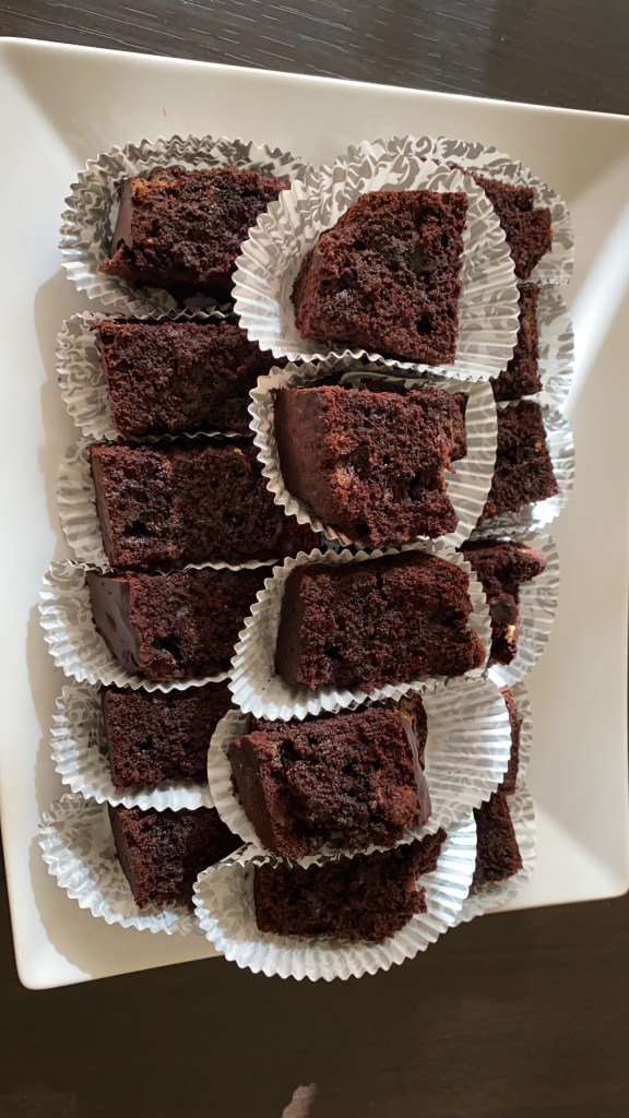 Con todos los ingredientes unidos lo pasamos a un molde engrasado o cubierto con papel vegetal y horneamos a 175º en horno precalentado durante unos 25 minutos o cuando al pinchar el centro salga apenas húmedo, en ese momento apagamos horno, retiramos, dejamos enfriar antes de desmoldar y servimos como mas nos guste.